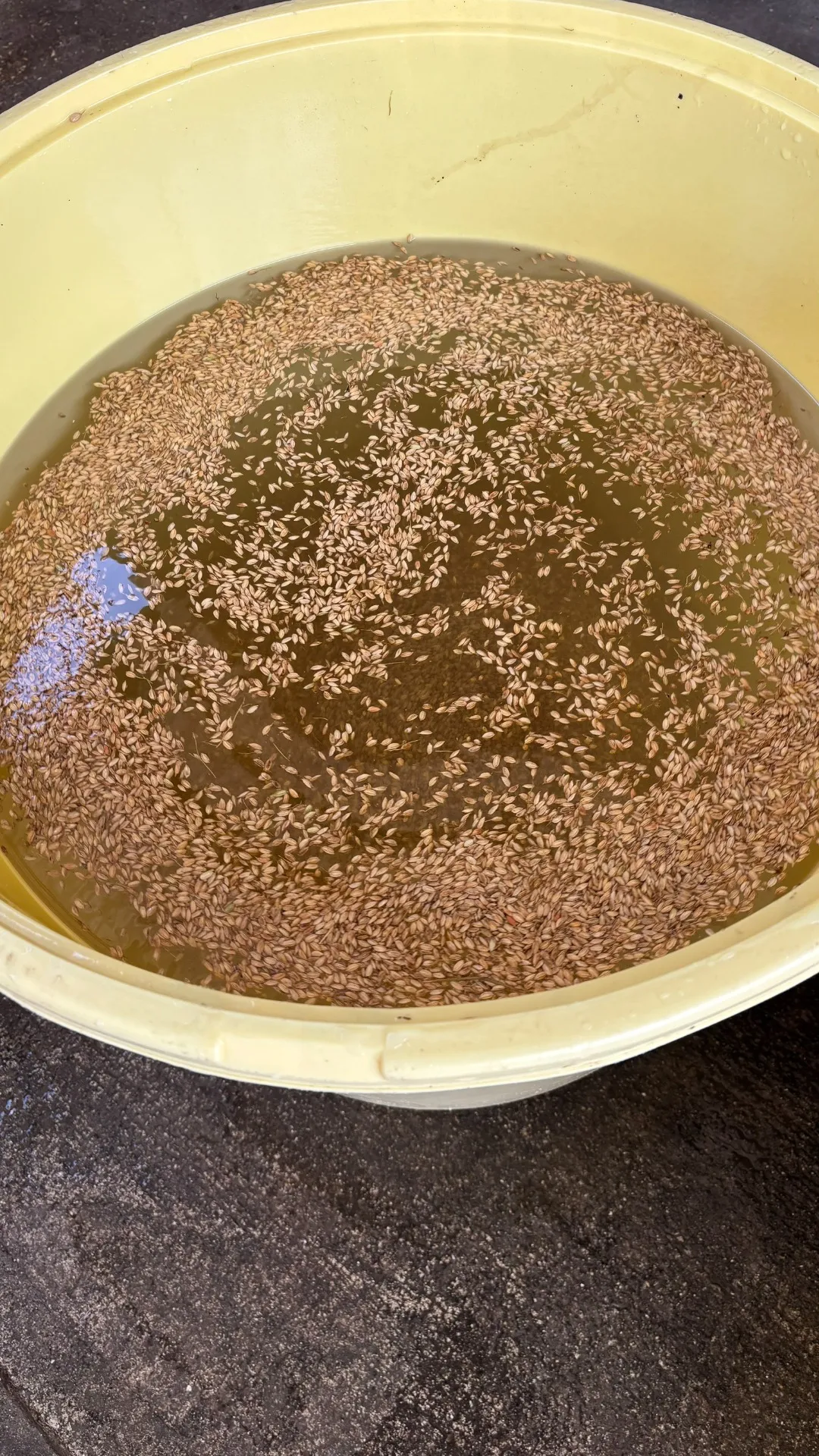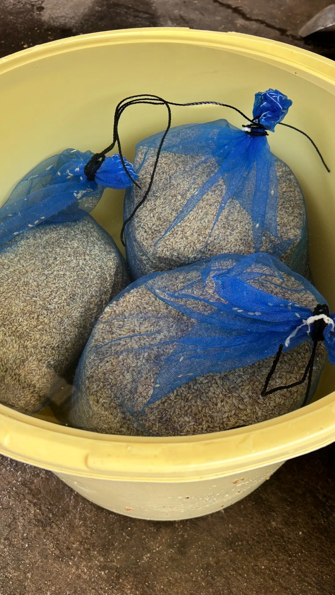 種もみを塩水に入れて浮いてきた種は取り良質な種と選別しました。結構浮いてきました。その後ネットにいれて一週間ほど水につけます。ここが肝心の『芽出し』の工程です。種もみから白い目がはと胸状に出てきたときに種まきをします。